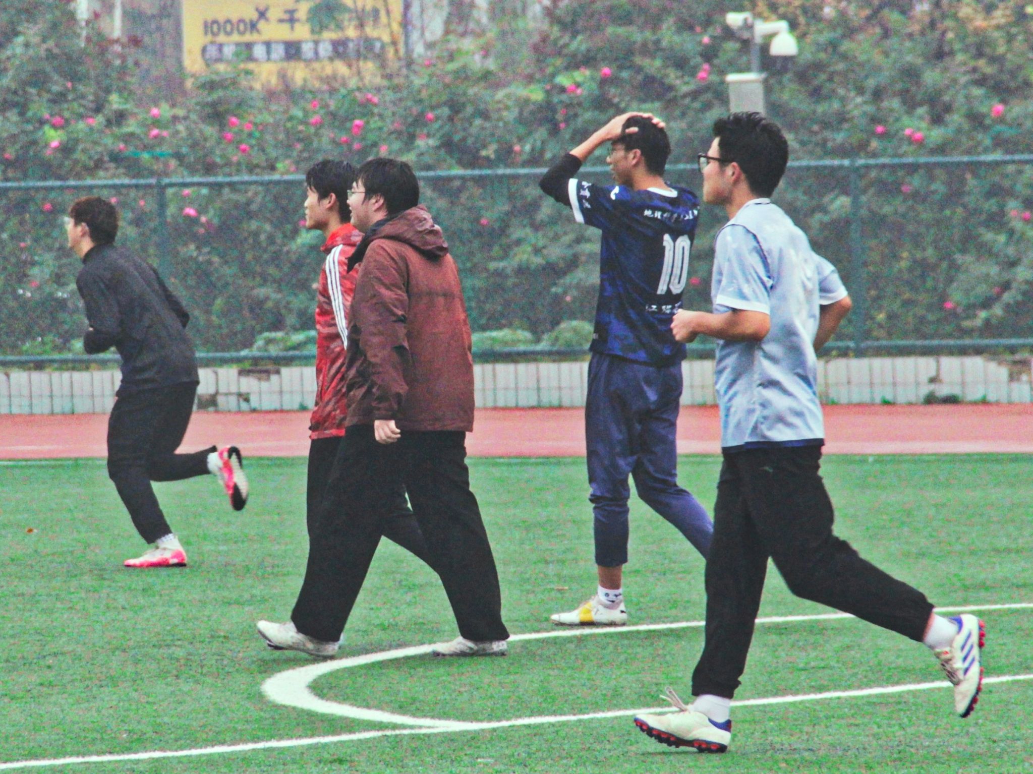 此次比赛为11人制,分为新生队与老生队两个队伍。随着裁判一声哨响,比赛正式拉开帷幕。场上队员们迅速进入状态,带球突破、精准传球、奋力防守,每一个动作都展现着对足球运动的热爱与团队协作的默契。上半场,老生队费超凡率先破门,为队伍拿下首分。新生队不甘示弱,迅速调整状态,由岑亚峰扳回一球,比分持平。随后老生队加紧反攻,马嘉伟、陈文接连进球,将比分拉开至3:1。在剩余时间中,新生队团结协作,赵梓鉴成功追回一分,上半场比赛以新生队比老生队2:3结束。