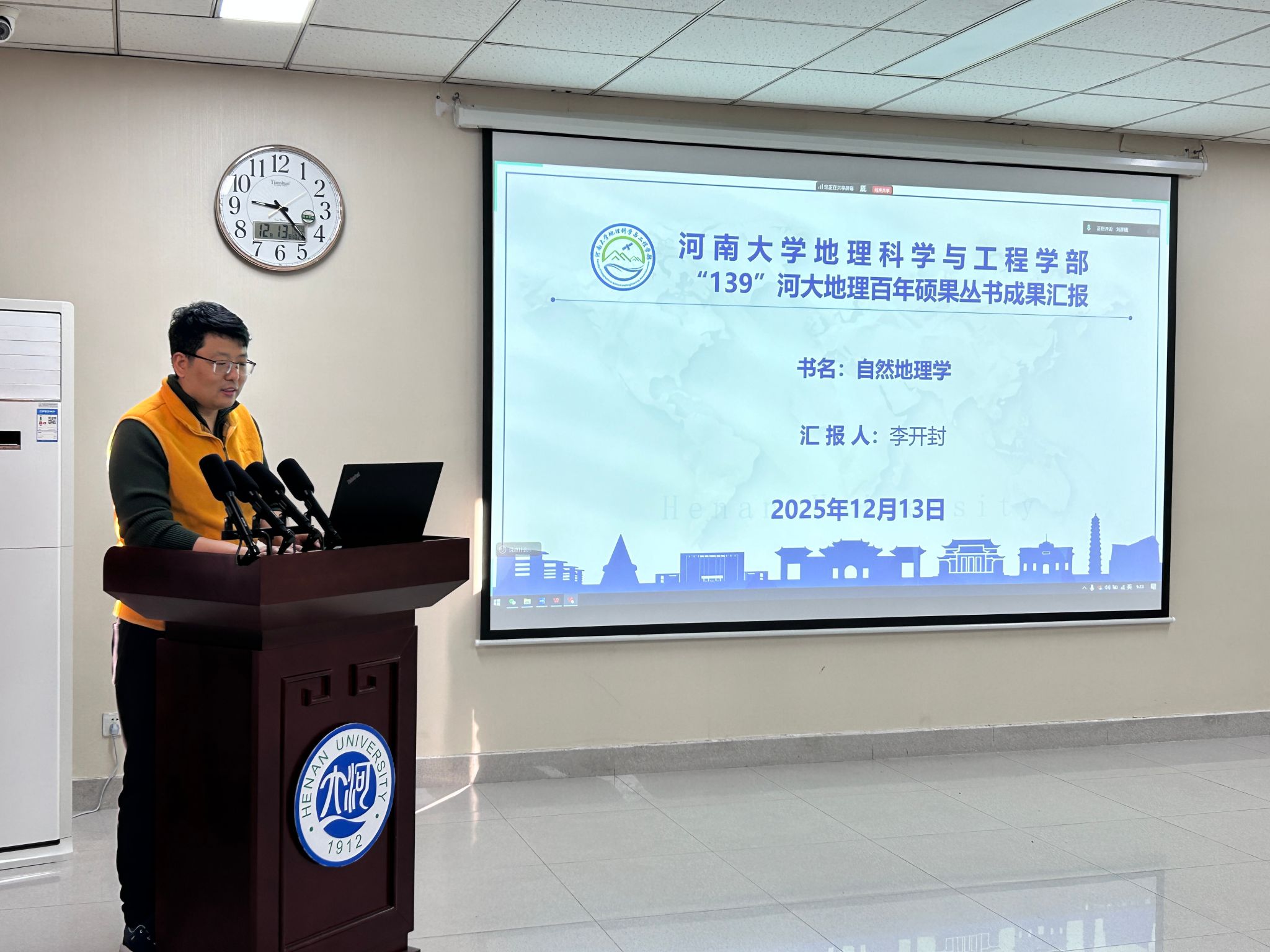 本次汇报会不仅是一次阶段性进展的集中展示,更是提升“百年地学硕果丛书”编写质量的关键契机。它为各编写团队搭建了跨分册的交流平台,推动编者们在内容互补、标准统一等方面形成了共识;同时,出版社与学部职能部门的参与,也从出版规范、学科资源协调等维度为丛书质量保驾护航。通过本次会议的梳理与研讨,各团队进一步明确了编写中的优化方向,为后续打磨内容细节、提升学术深度、强化丛书的系统性与权威性奠定了基础,助力这套承载河南大学地理学科百年积淀的丛书,最终以高质量的成果呈现于学界与社会,成为展现河南大学地理学科实力与学术传承的标志性著作。