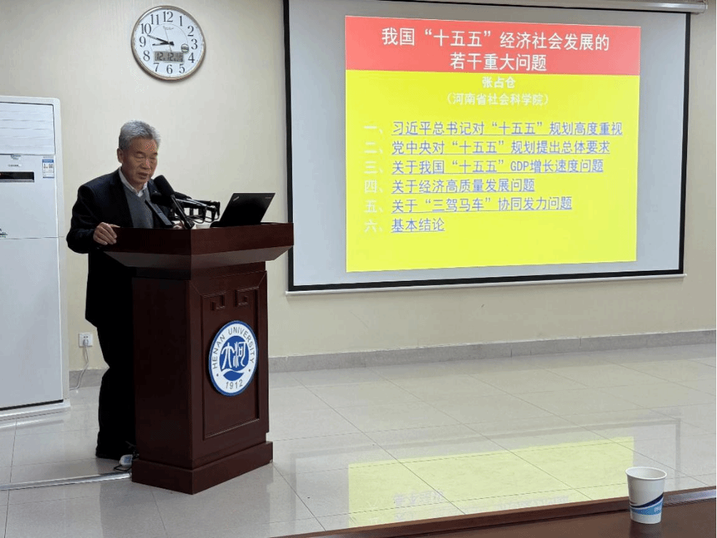 2025年12月12日上午,应我部区域与城市科学系李二玲教授邀请,中共河南省委咨询组研究员、河南省人民政府专家咨询委员会委员、河南省社科院原院长张占仓研究员在地学楼二楼报告厅为我部师生作题为“我国‘十五五’经济社会发展的若干重大问题”的专题报告。此次报告会吸引了100余名我部师生参会,报告会由学部委员、地理科学学院执行院长赵威教授主持。