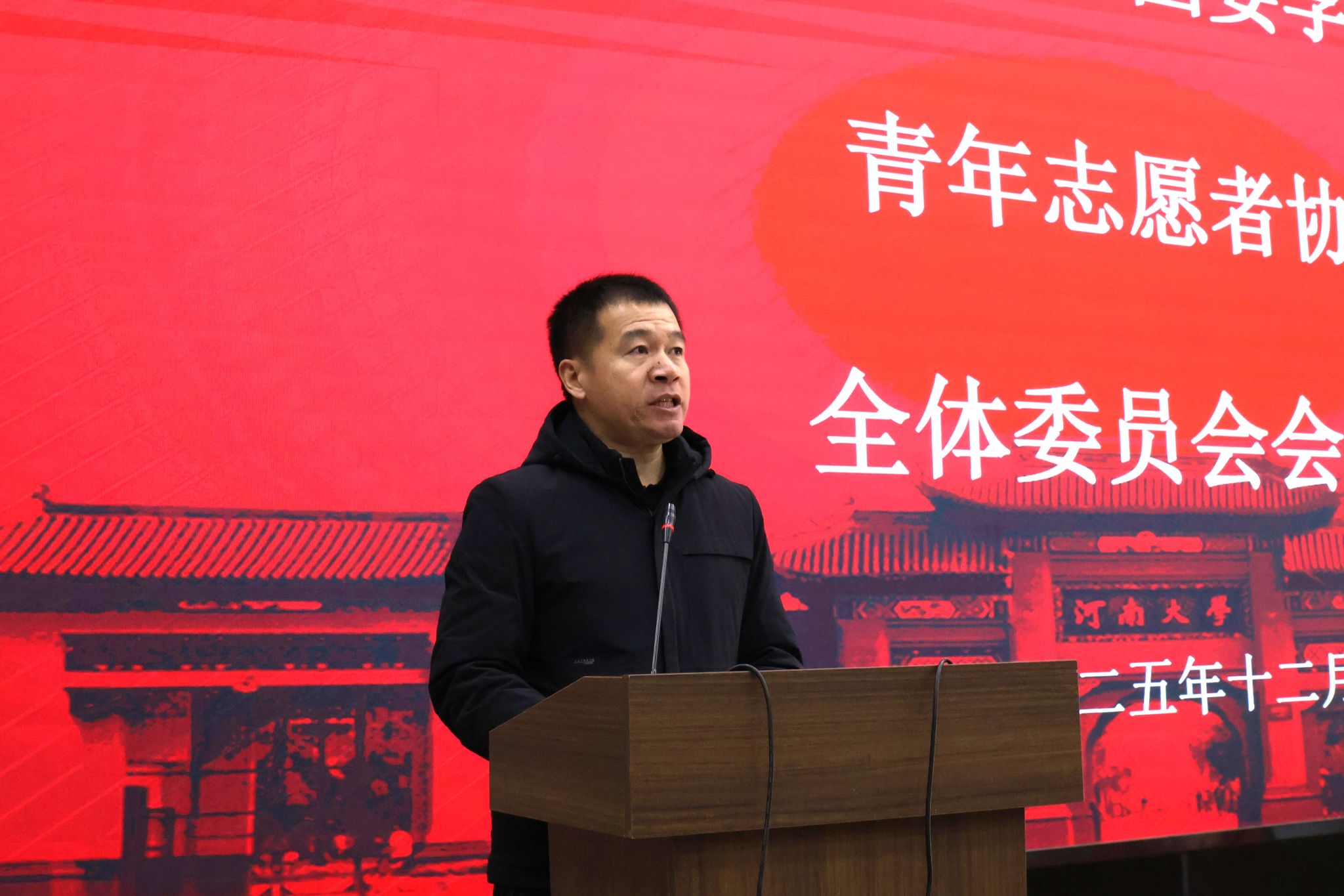 会议伊始,徐小军对新晋加入本届团委学生会和青年志愿者协会的成员表示欢迎。他肯定了过去一年学院团学工作取得的成就,并向每一位默默坚守、无私付出的团学工作者致以诚挚感谢。为进一步提升团学工作质量,他向在场师生提出了三点期望:一是以“明德新民,止于至善”的校训和“养正毓德,经天纬地”的院训为指引,将地理学科特点与青年担当结合,强化价值引领;二是立足专业特色,推动实践融入团学工作,让学生在各类实践活动中锤炼技能、涵养情怀;三是整合团委、学生会等各个组织的力量,通过分工协作与跨组织合作凝聚合力。最后,他勉励全体学生同心同向、锐意进取,为学院发展汇聚更磅礴的青春力量,书写无愧于时代、无愧于青春的崭新篇章。