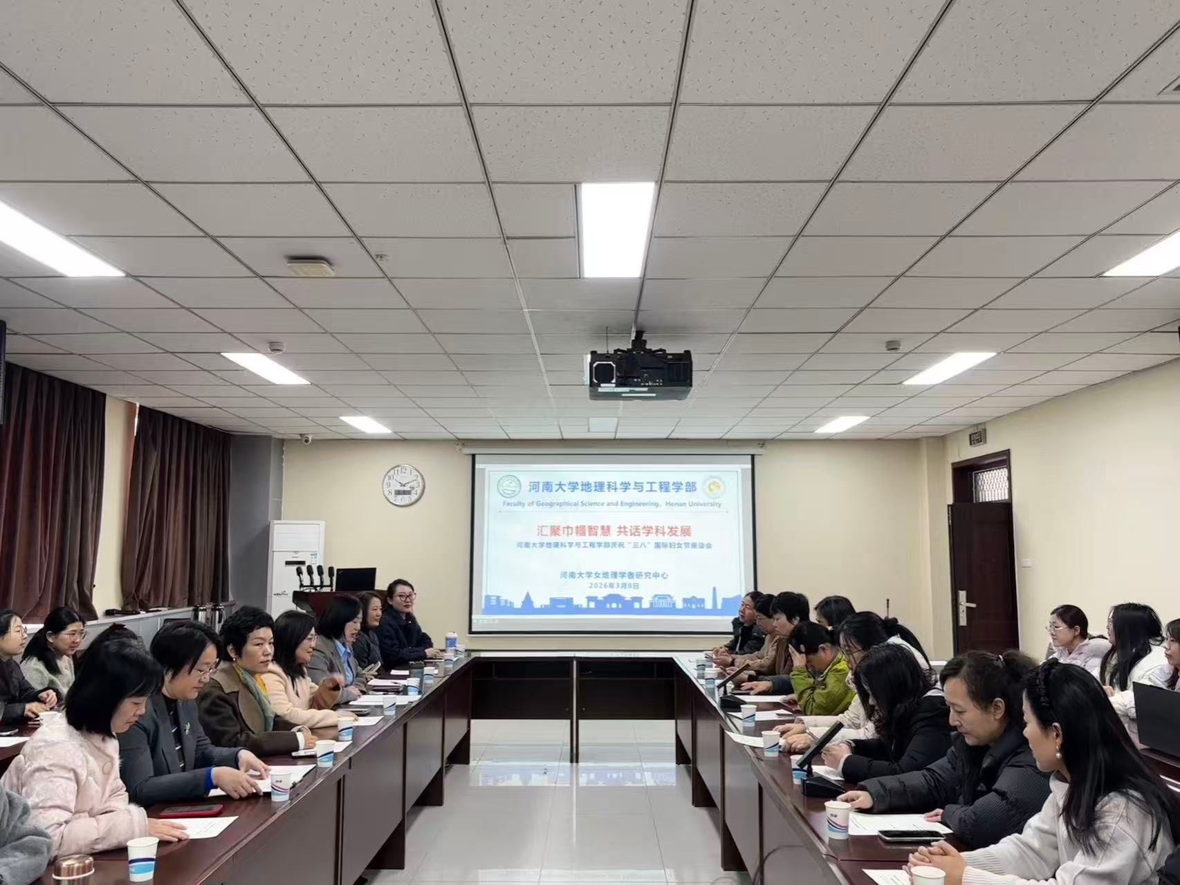 春启新程绽芳华,巾帼聚力谱新篇。为庆祝“三八”国际妇女节,充分发挥女地理学者在学部建设与学科发展中的重要作用,凝聚巾帼智慧与专业力量,地理科学与工程学部女地理学者研究中心主办了以“汇聚巾帼智慧 共话学科发展”为主题的女教师座谈交流活动。活动由女地理学者研究中心主任张晨露教授主持,地理科学学院副院长谷蕾致辞,学校教务处副处长张琨,研究生院副院长李志芳出席,学部全体女教师及研究生代表参加。大家欢聚一堂,共话学科发展,乐享节日时光。