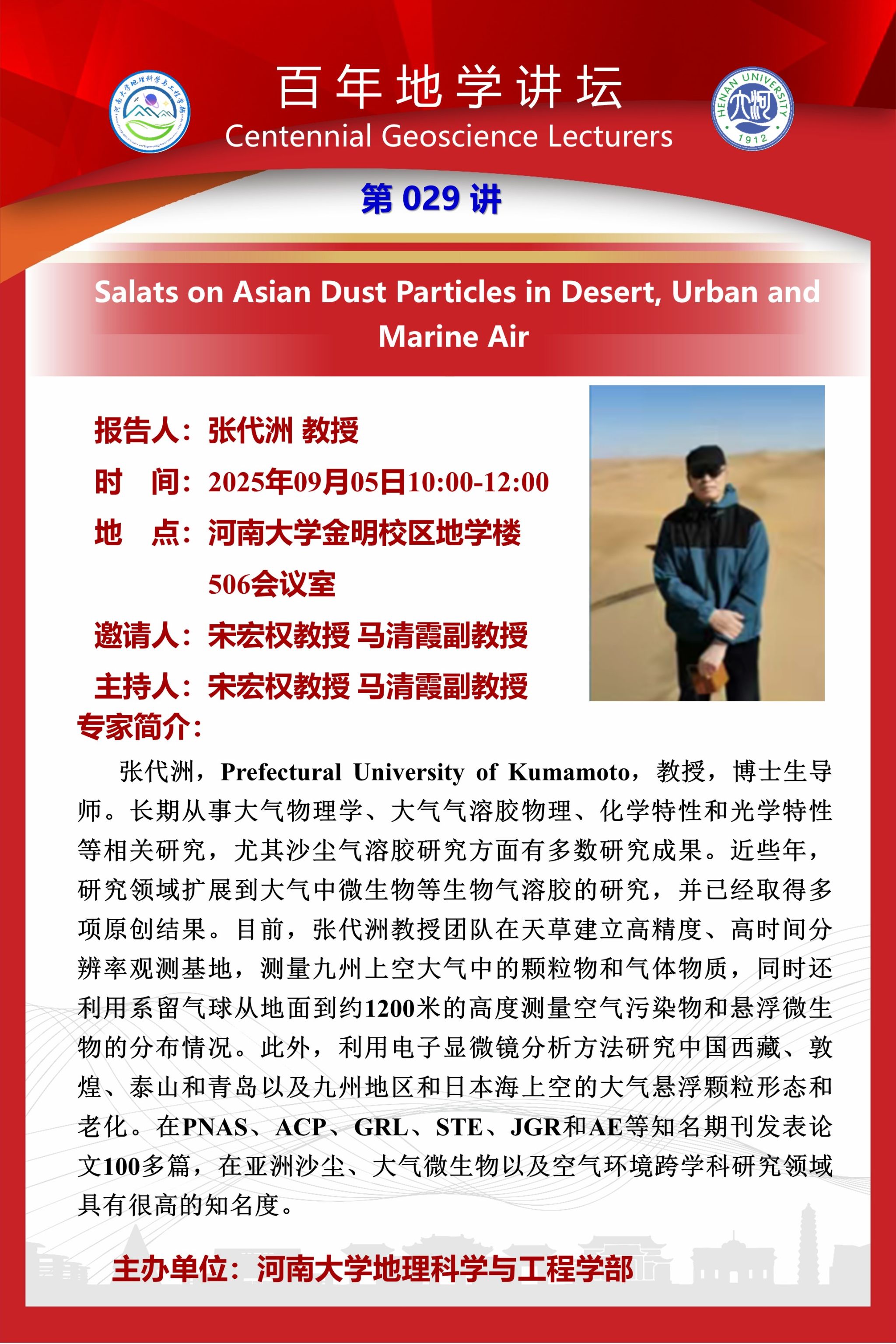 百年地学讲坛| Salats on Asian Dust Particles in Desert, Urban and Marine Air