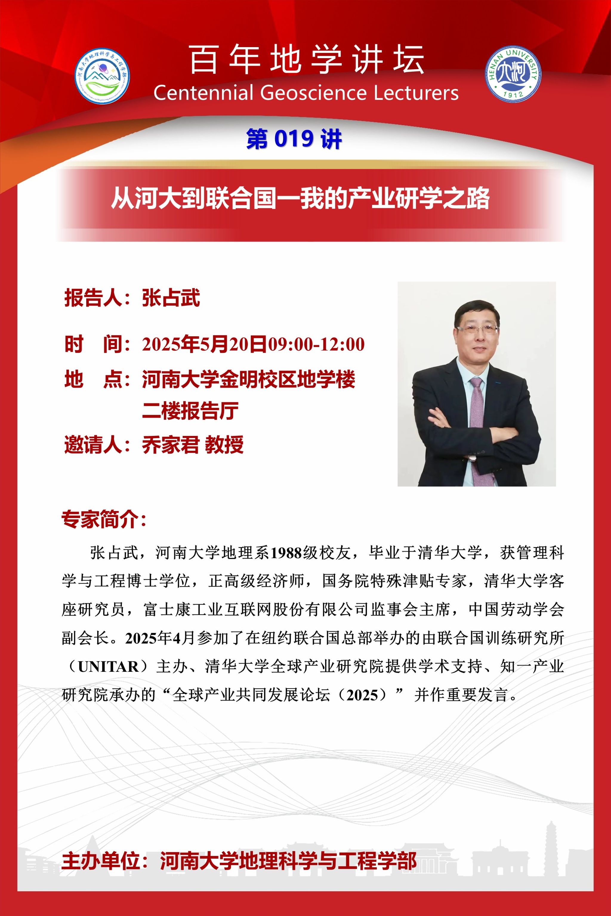 百年地学讲坛|从河大到联合国一我的产业研学之路