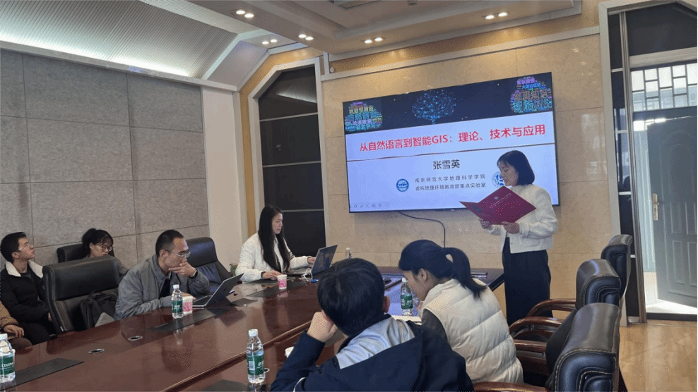 2025年10月31日,应我部地理科学学院翟石艳教授、宋宏权教授和夏浩铭副教授的诚挚邀请,南京师范大学教授张雪英、香港科技大学(广州)助理教授车伟涛莅临我部进行学术交流。两位专家在地学楼402会议室分别作了题为《从自然语言到智能GIS:理论、技术与应用》和《虚拟地理环境研究探索与数字孪生实践应用》的专题报告。报告会由翟石艳主持,我部相关专业师生积极参与此次交流研讨。