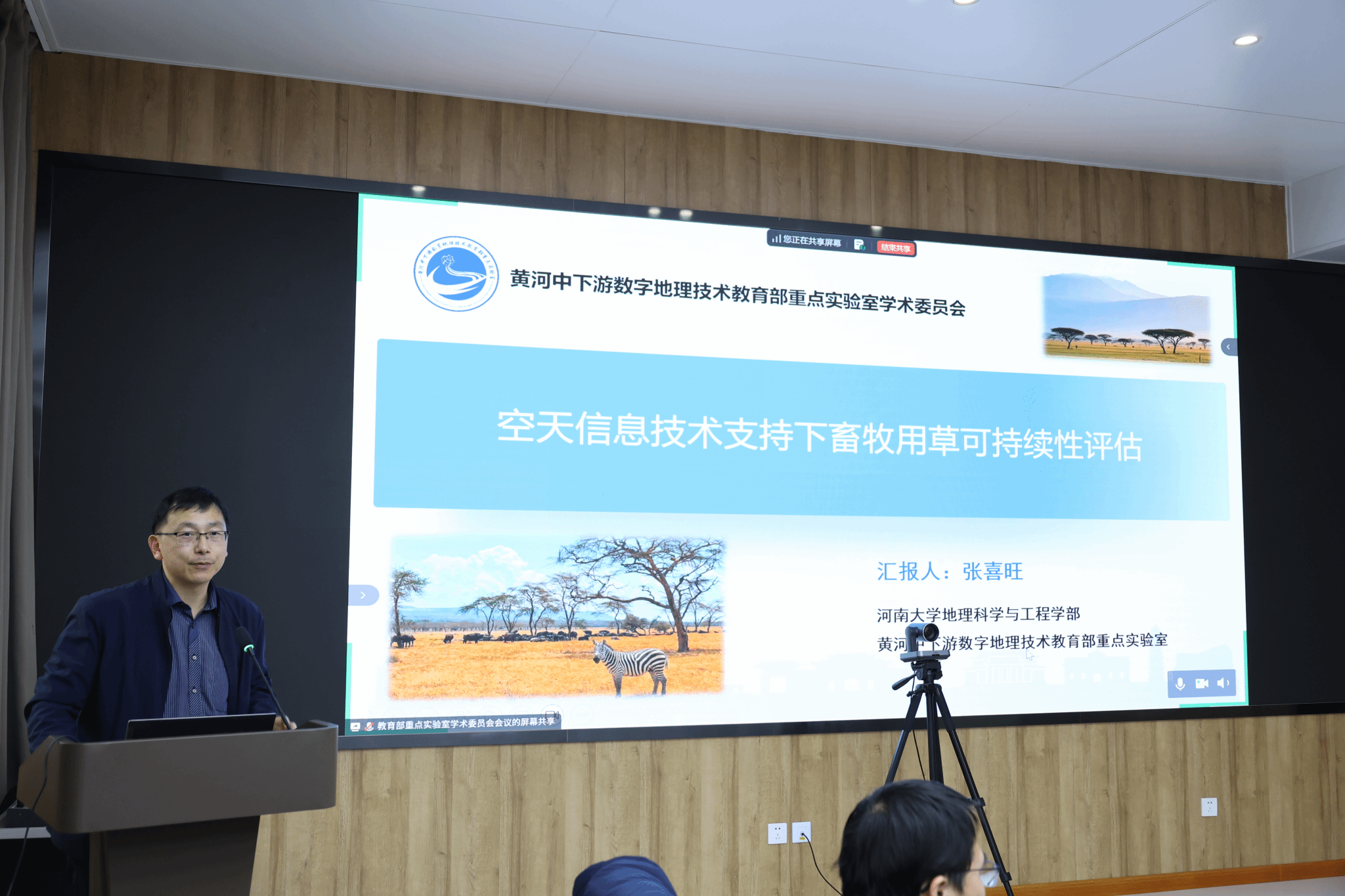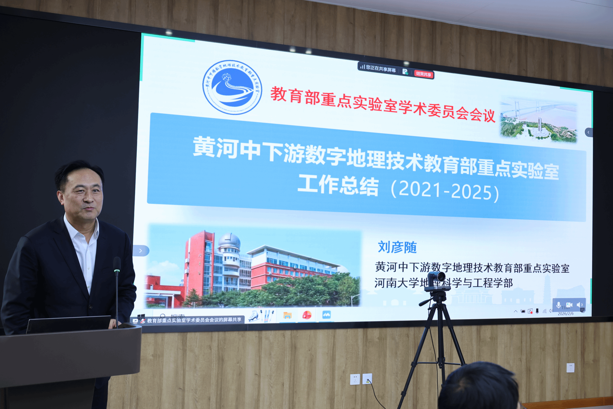 实验室主任刘彦随教授向与会专家详细汇报了实验室2021-2025年工作进展情况,重点从实验室定位、研究水平、人才培养、社会服务等四个方面总结了过去五年的建设成效。汇报指出,实验室聚焦黄河中下游区域,以数字地理技术为核心,在自然地理格局模拟、城市与经济地理计算、地理信息技术应用等领域取得系列重要成果,积极对接和服务地方需求取得显著成效,近年来在创建地理科学—地理技术—地理工程—地理实践(Geo-STEP)四维融通范式,以及数字地理技术赋能兰考县脱贫攻坚、乡村振兴和数智兰考建设等项目中发挥了重要作用。随后,实验室青年学者董冠鹏、翟石艳、张喜旺等教授分别作专题报告,介绍了各自研究领域的前沿进展及其创新成果。