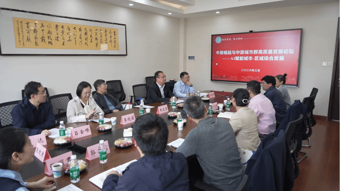 为紧扣中部崛起战略实施二十周年时代契机,以数智技术赋能区域高质量发展为核心导向,深入探索中原城市群建设与发展的创新路径,3月29日,中原崛起与中原城市群高质量发展论坛——AI赋能城市-区域综合发展在河南大学金明校区地学楼 301 会议室成功举办。本次论坛由河南大学地理科学与工程学部主办,河南大学区域发展与规划研究中心承办,汇聚省内外高校、科研院所及行业领域的多位专家学者,围绕 AI 技术应用、都市圈协同治理、文旅产业融合、城市空间规划与风险防控等关键议题开展学术研讨与思想交流,为献策中原城市群高质量发展、助力中原崛起贡献学术智慧与实践思路。