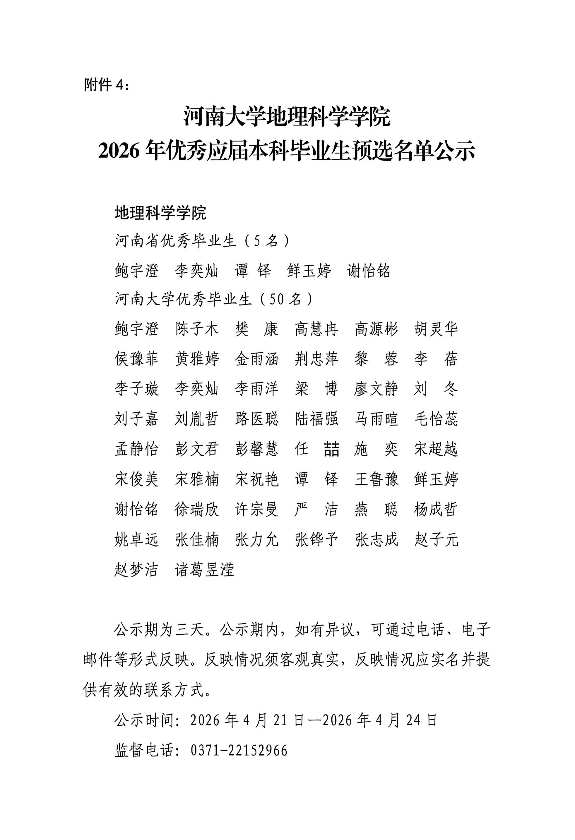 附件【已下载附件4 河南大学地理科学学院2026年优秀应届本科毕业生预选名单公示421.docx次】