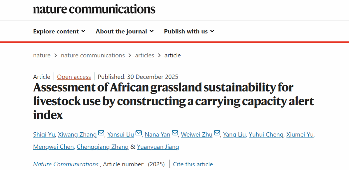 论文信息:Yu, S., Zhang, X*., Liu, Y*. et al. Assessment of African grassland sustainability for livestock use by constructing a carrying capacity alert index. Nat Commun (2025). https://doi.org/10.1038/s41467-025-68084-7
